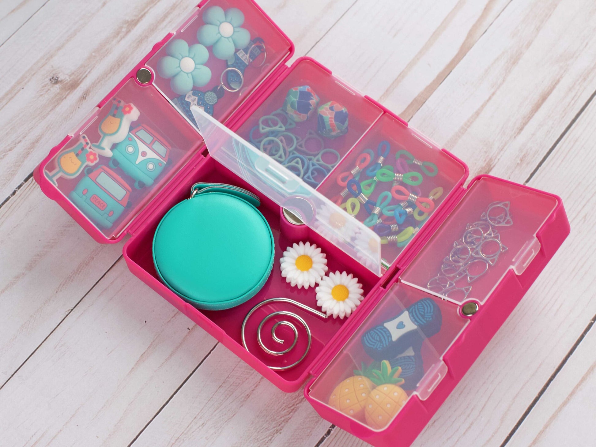 Fox & Pine Notion Nooks are the ultimate on the go notion organizer. You'll never want to leave home without it! Store and proudly display all of your stitch stoppers, notions and tools in our portable & durable hard plastic containers. Perfect to throw in your project bag and take with you wherever your craft projects go. The high quality cases have transparent flaps for each compartment so you can see your collection of notions while keeping them organized in separate sections. The cases close securely with a strong magnet. Measurements: 5.25" tall, 4" across when closed; 8" across when open, 1.5" depth when closed.