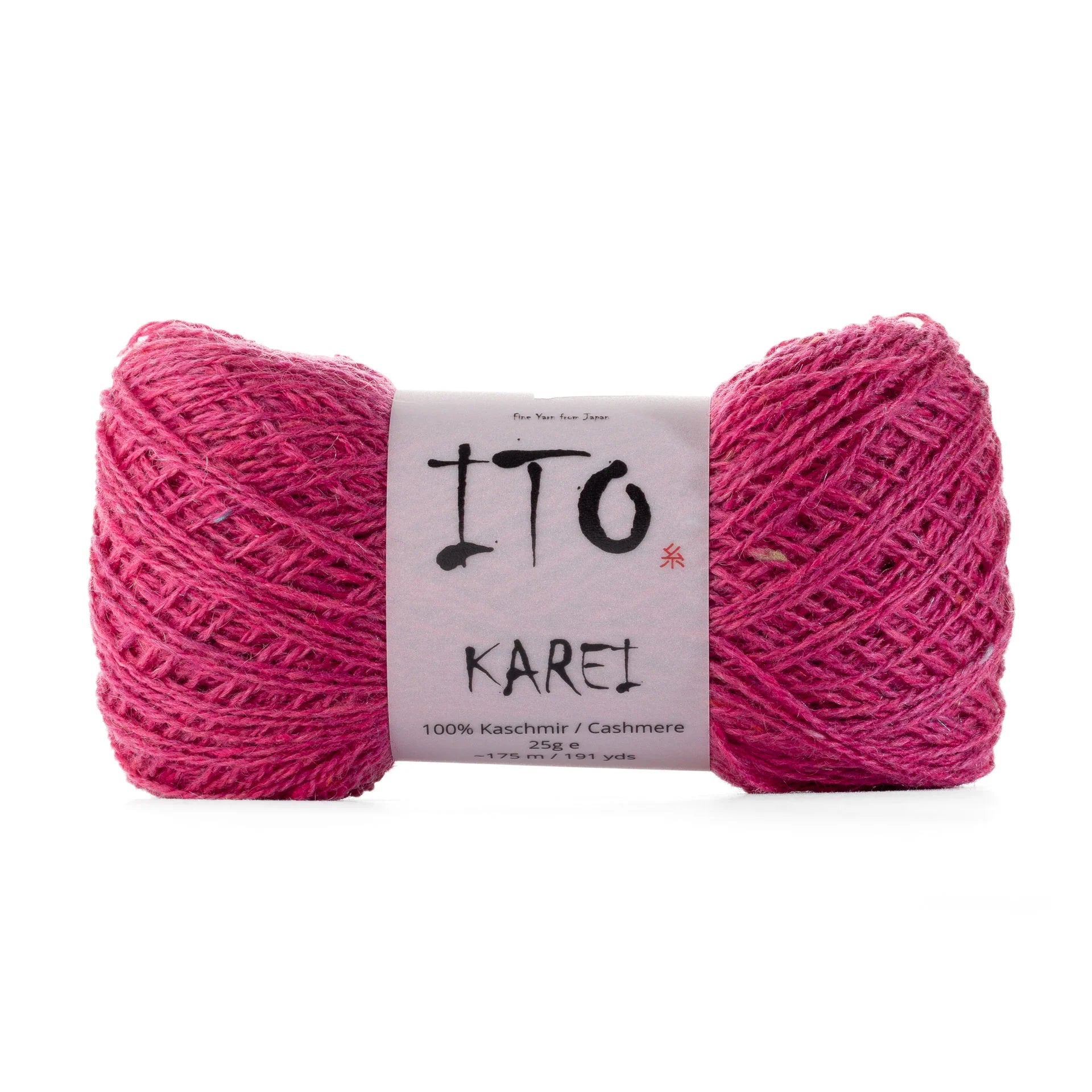ITO Karei is a carded yarn spun on a traditional carriage spinning machine - a technique known for producing the highest quality yarns. The art of cashmere spinning reaches its pinnacle with ITO Karei, as carriage spinning produces yarns of outstanding quality, which are particularly warm, soft and productive due to trapped air pockets. This yarn offers an incomparable knitting experience and transforms every project into a luxurious masterpiece. In addition, ITO Karei is washed after spinning and reveals its full beauty and softness with further washing.
