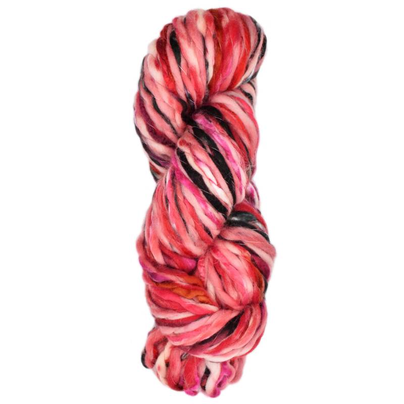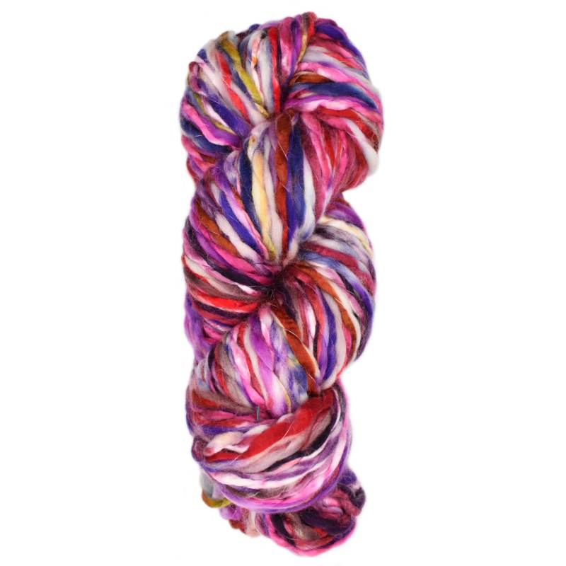 "Enorme" is a super bulky, majority Virgin Wool blend. This yarn is dyed with a special hand crafted dye effect. There is a randomness to the way colors mix and the absorption of dyes is left in a natural way. The exciting colors add extra interest to your finished project
