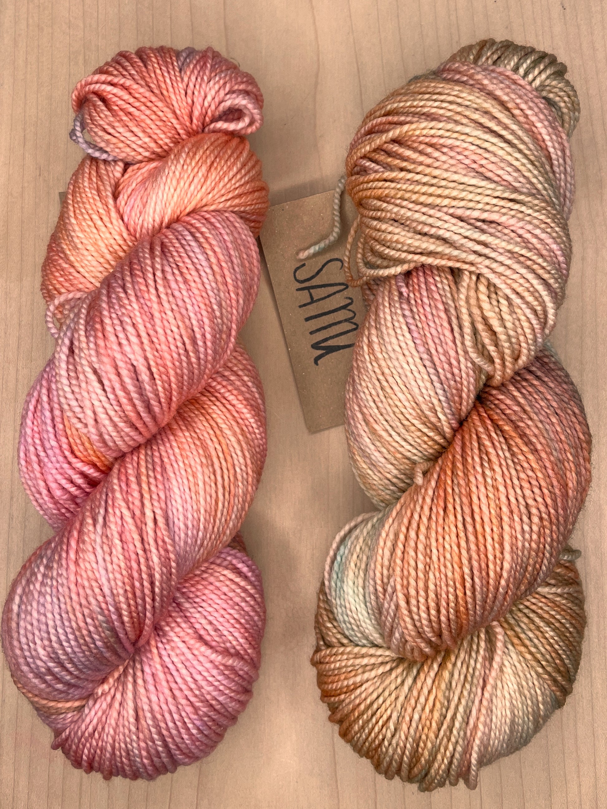 Sami is spun of the same fiber and to the same weight as Marla, though it is dyed after plying. The yarn has a delightfully springy structure and tonal hand-dyed colors. These semi-solid and watercolors are dyed specifically to coordinate with the Marla palette!