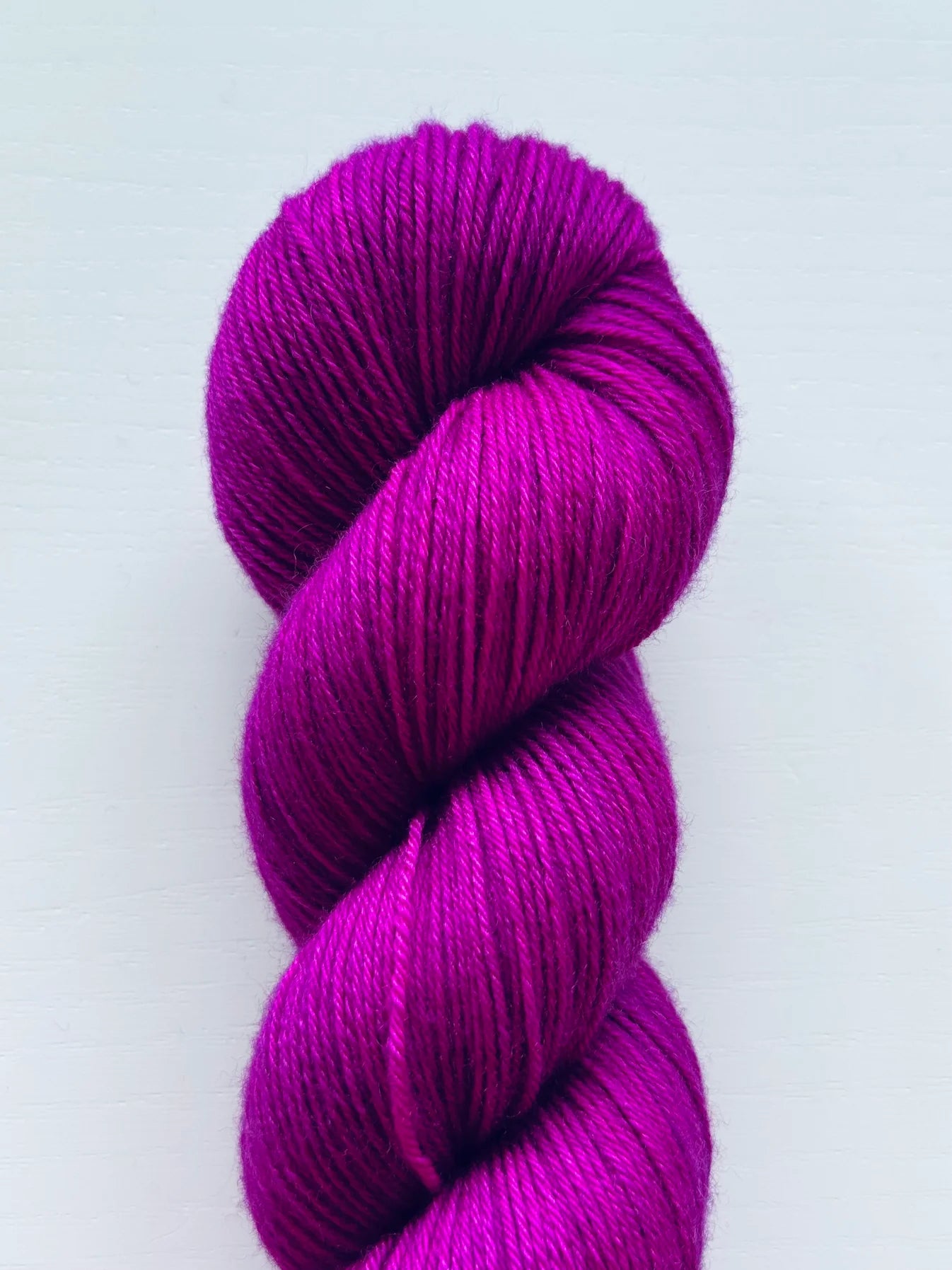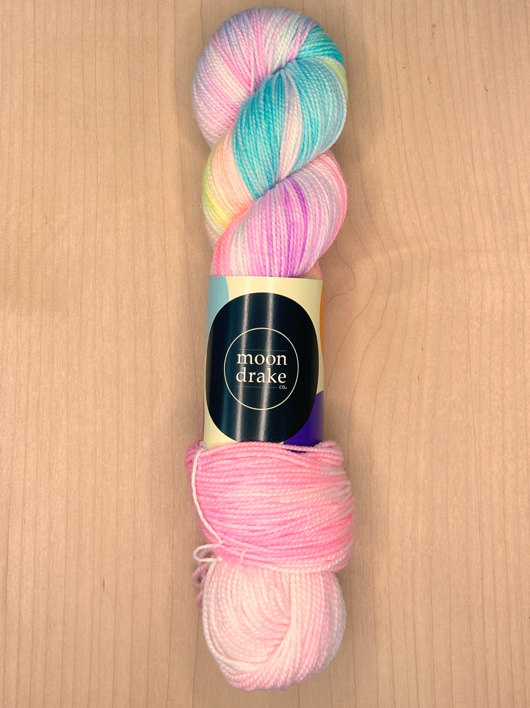 Chibi Sport is 100% Superwash Merino 2-ply, 370yds/100g. Light Sport weight. Beautiful saturated colors!