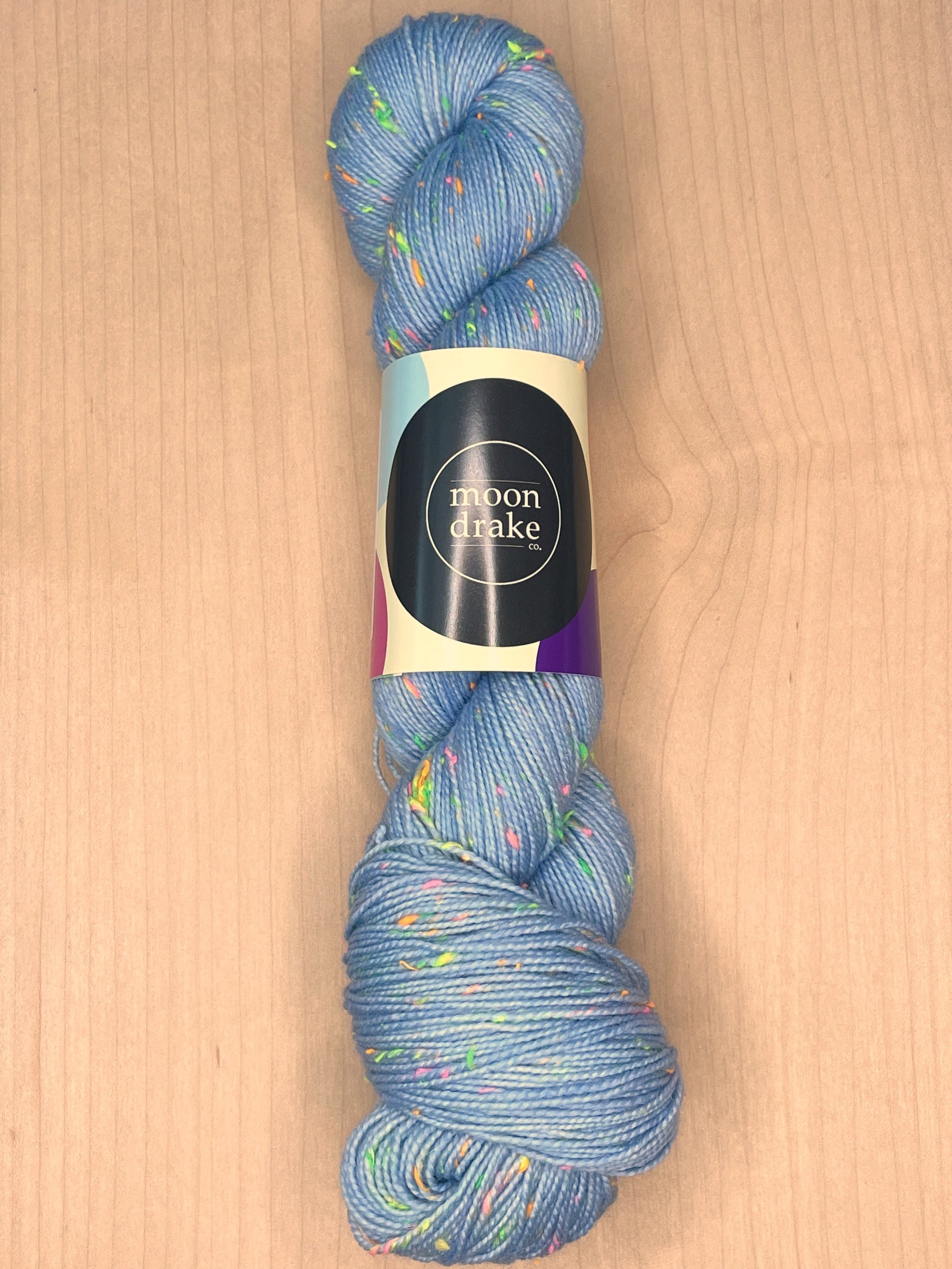 Moondrake Co's Ultraviolet Stardust adds a bit of flair with neon neps that sing against solid or variegated backgrounds.
