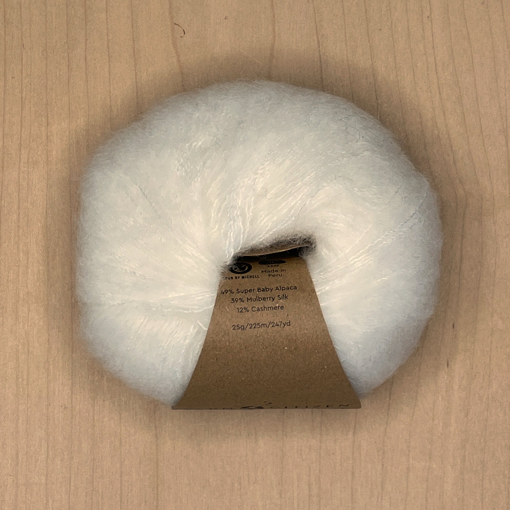 A luxurious blend of Super Baby Alpaca, Mulberry Silk , and Cashmere, perfect for using along or held double with another yarn. Trinity Cashmere is sourced from a fair trade mill in Peru and priced consciously too